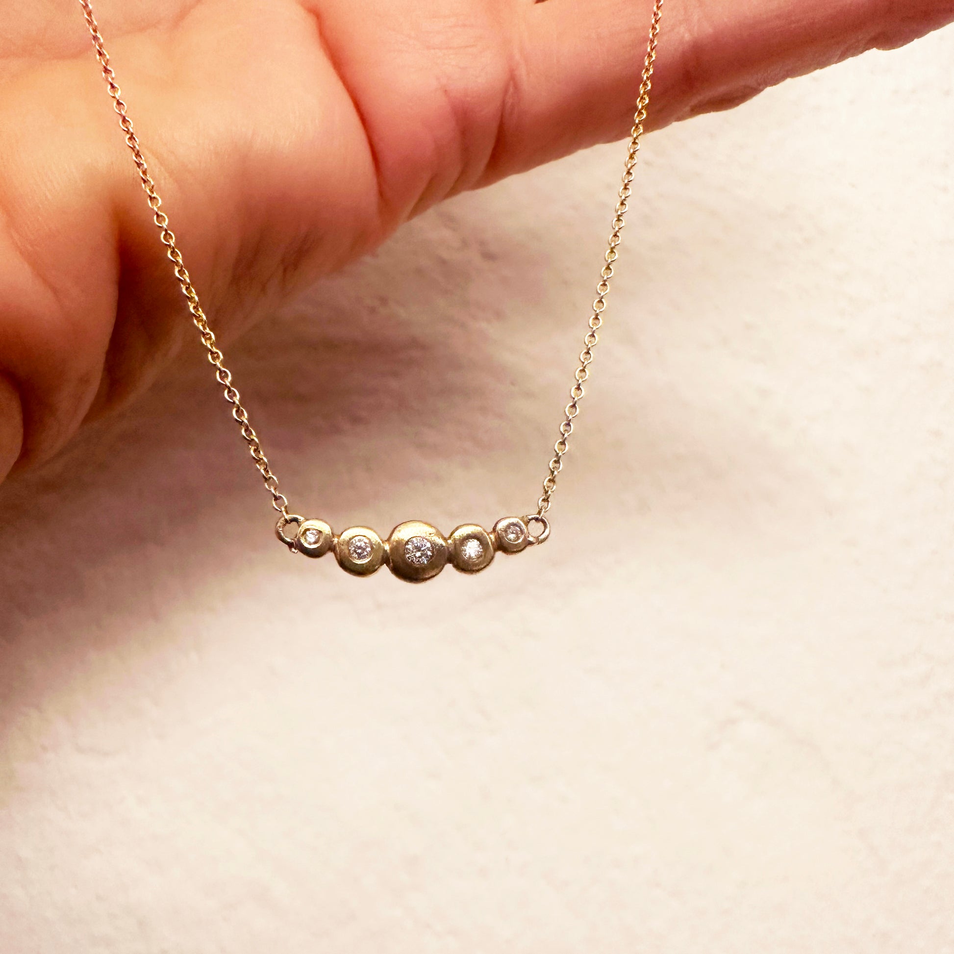 Unika halskæde 5 guldskiver med en diamant i hver