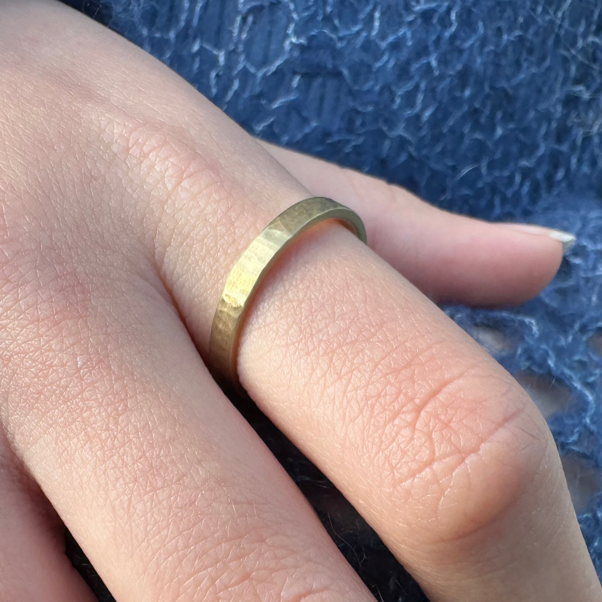 Unika guldring med hammerslået overflade.