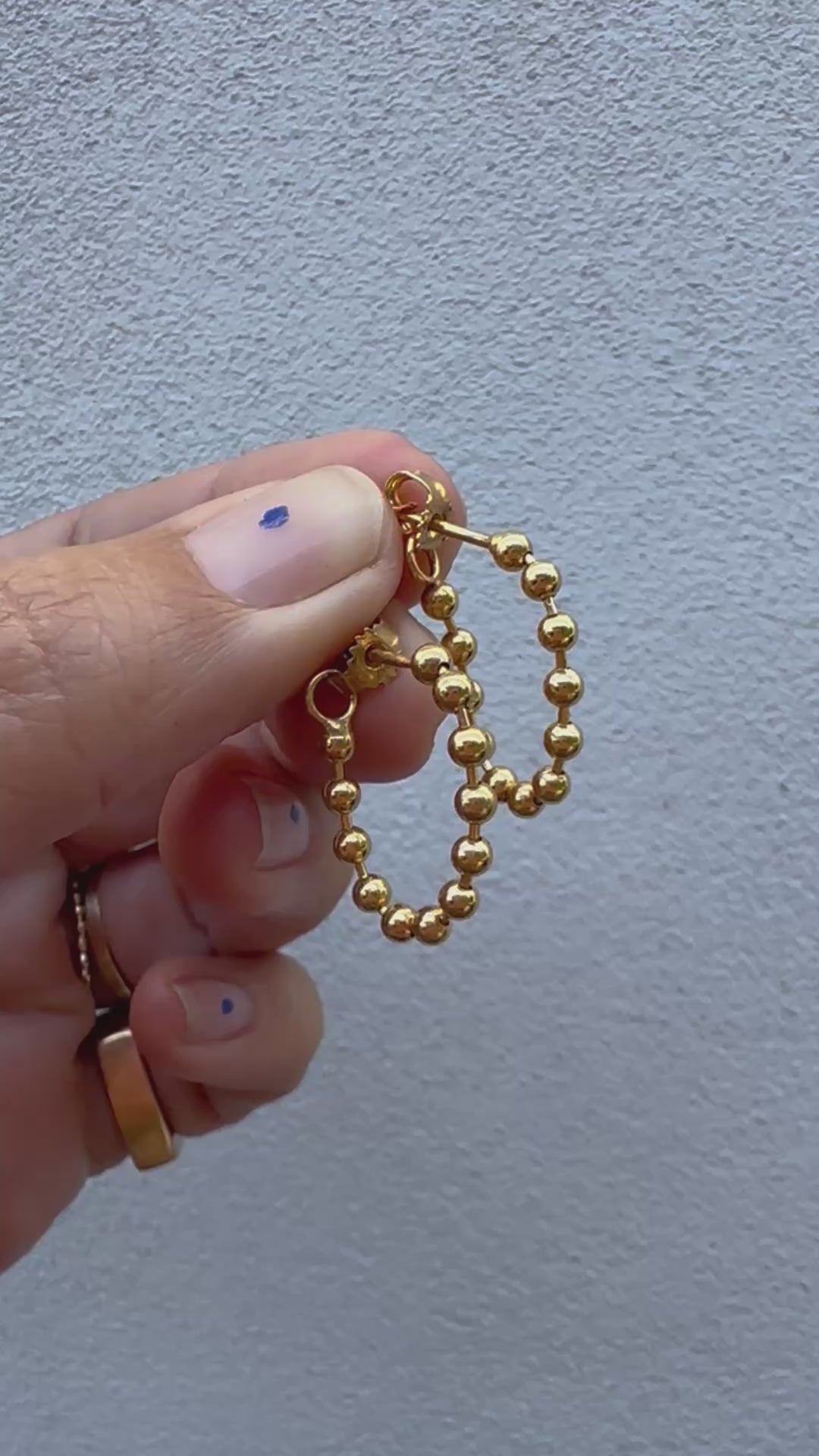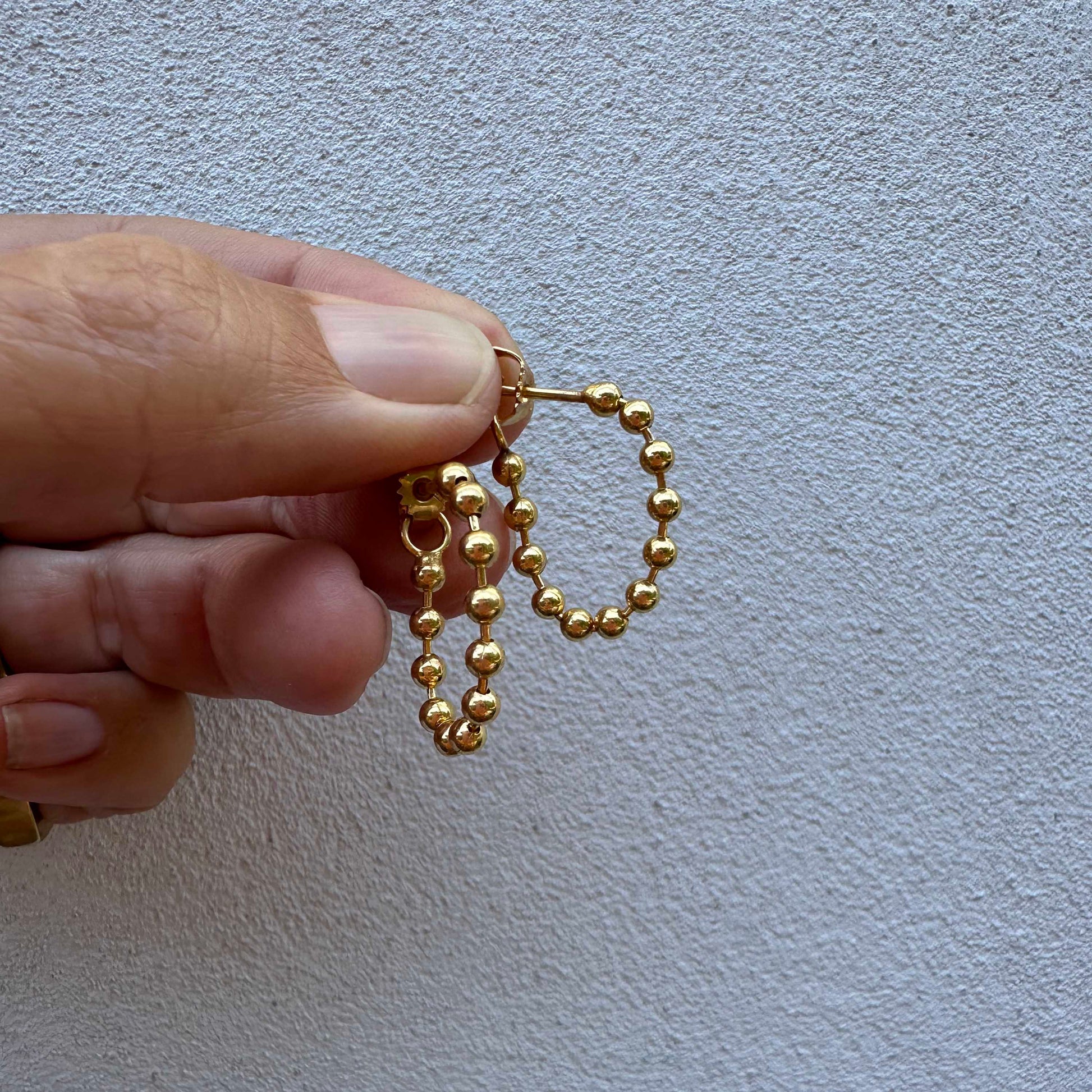 Made of loose ball chain, so the earring can move in all joints. The earring is put on by taking the last joint where the lock is mounted and placing it on the back of the ear on the ear stud.