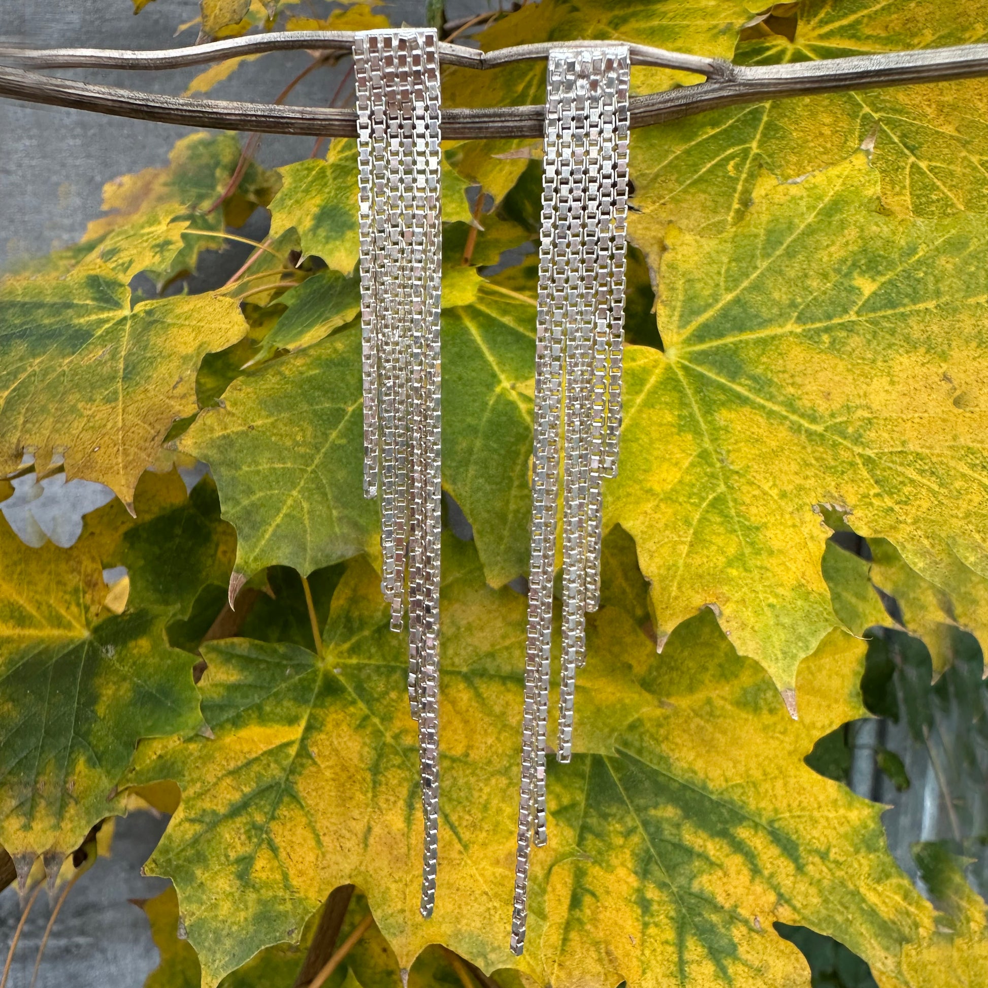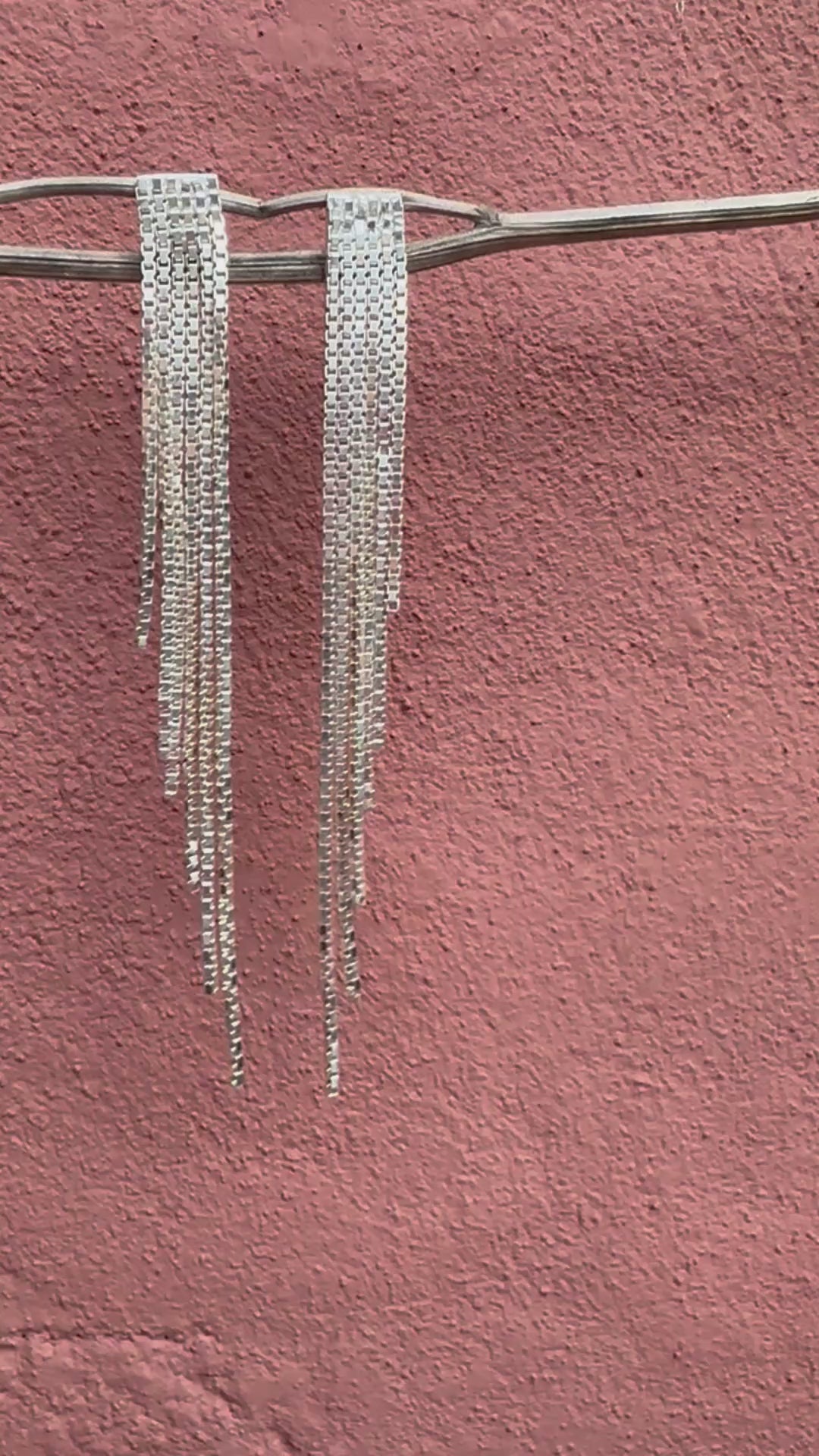 Festive earrings that move in all directions and catch the light with their many surfaces.